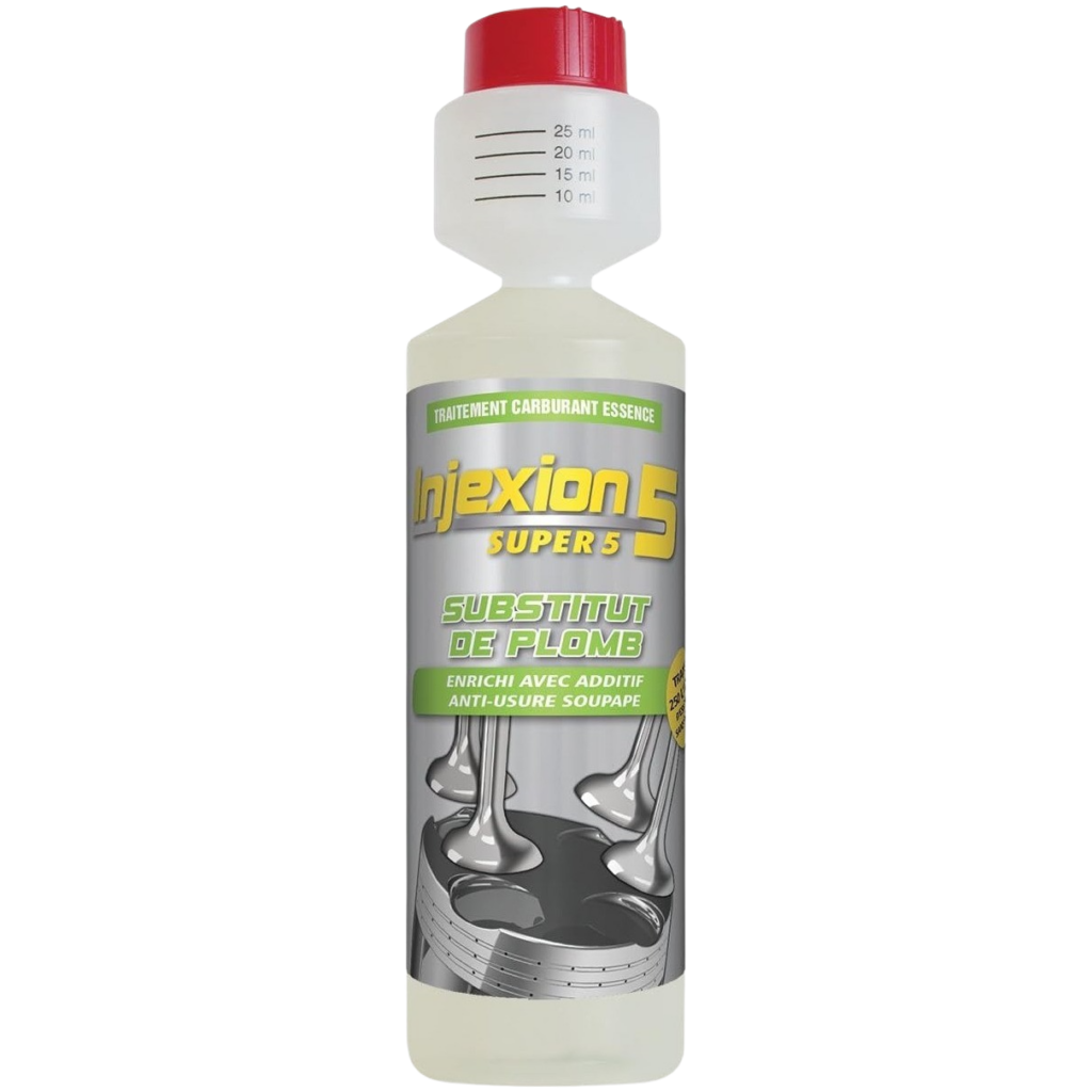 Dosage : 1 ml par litre d’essence, soit par exemple 25 ml de Injexion 5 Super 5 pour 25 L d’essence.