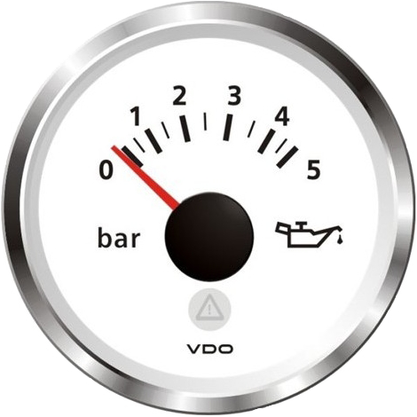 Pression d’huile 0-5 bars fond blanc et cerclage triangle chromé diam. 52mm