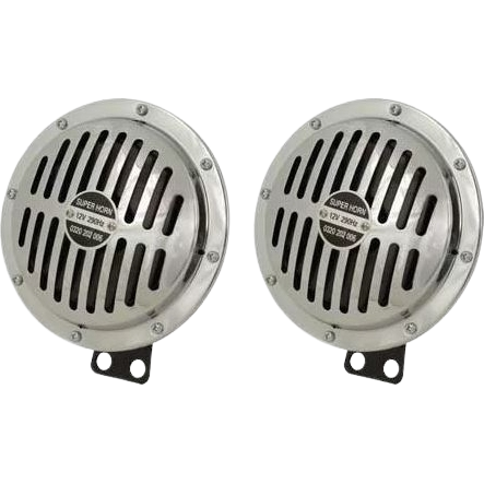 Kit 2 klaxons 12 volts chromés ton bas 320Hz et ton haut 430Hz