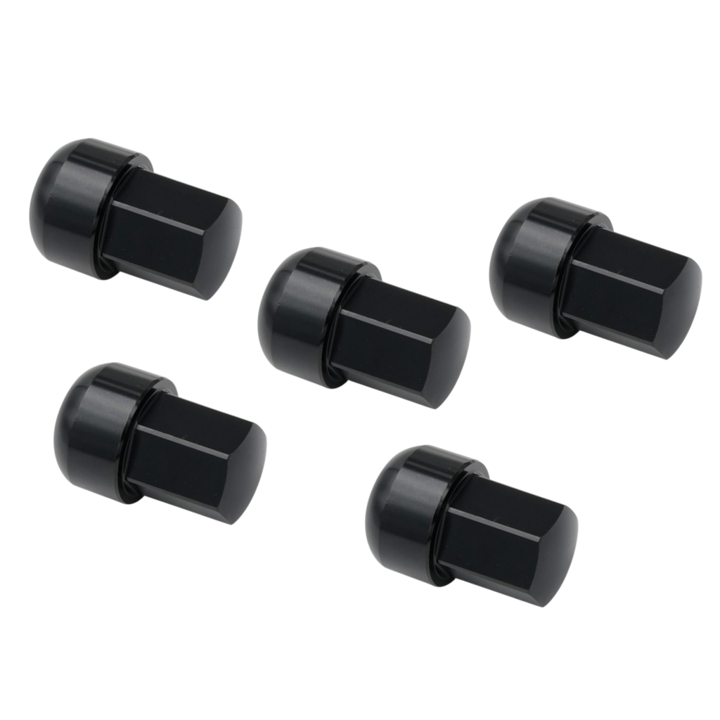 Set de 5 écrous de roue aluminium style PORSCHE à appuis bombé (14×1,5) noir anodisé, spécifiques pour jantes 17 pouces